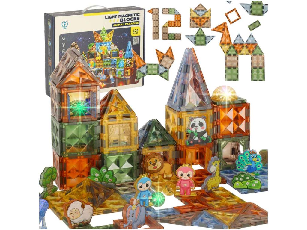 3D magnetické stavebnice svítící zvířecí park 124 el.