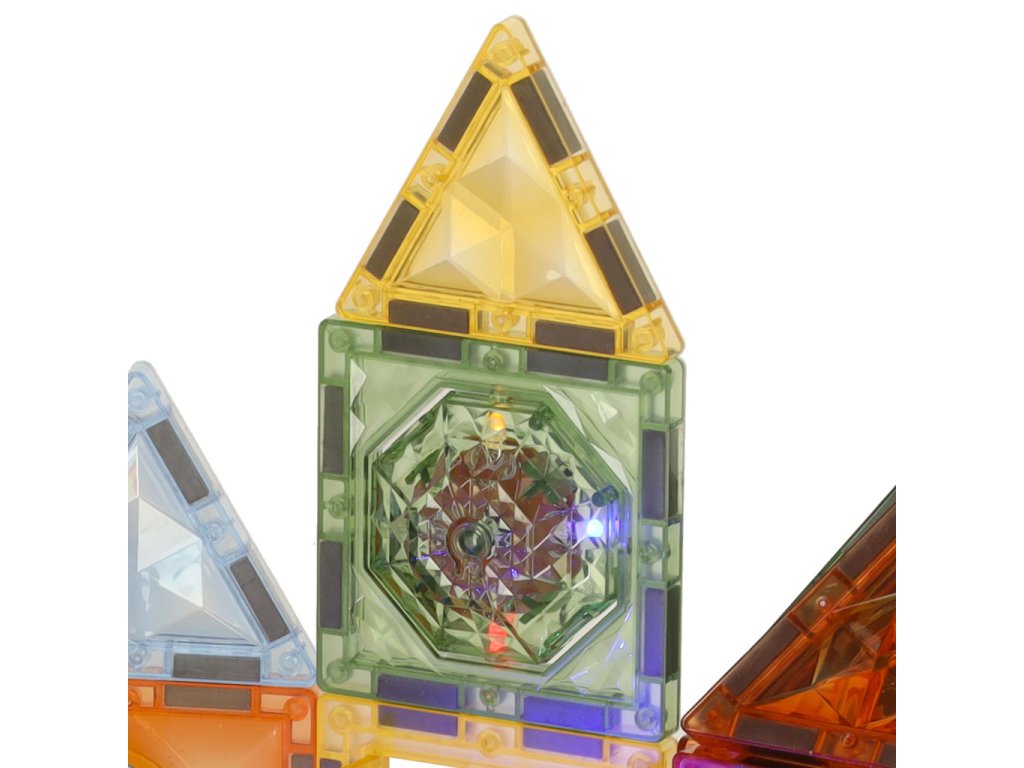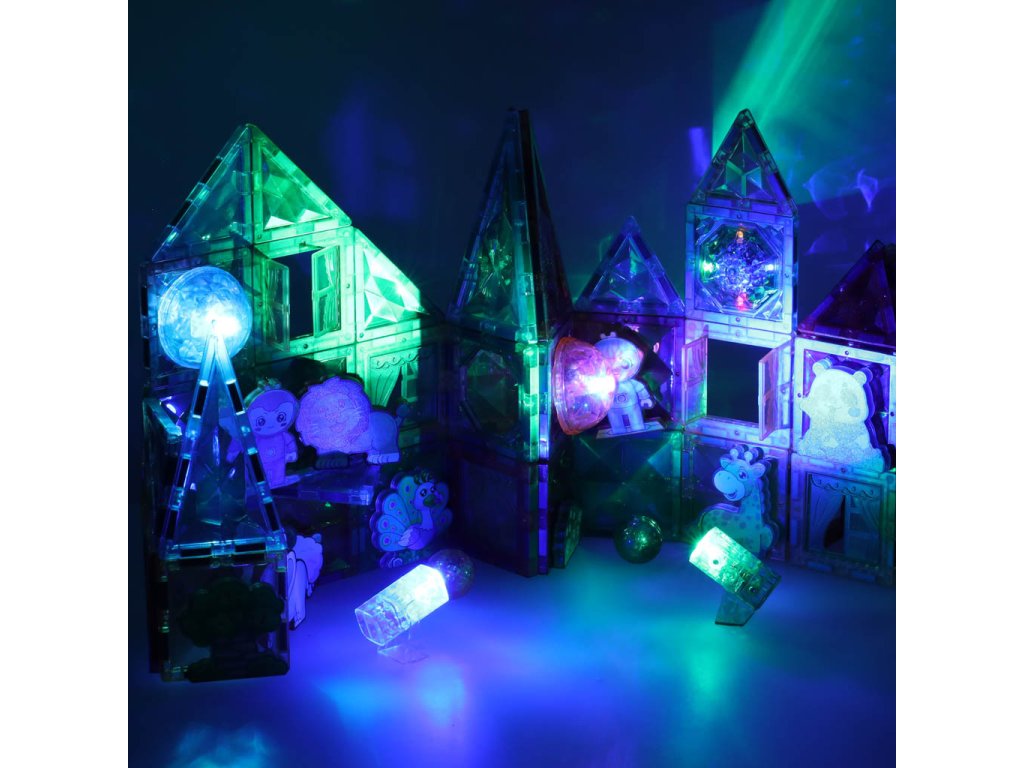 Cihličky mají zabudované magnety, které usnadňují spojování a oddělování dílků bez použití síly. Některé kostky svítí, takže každá postavená stavba je ještě působivější, zejména po setmění!
