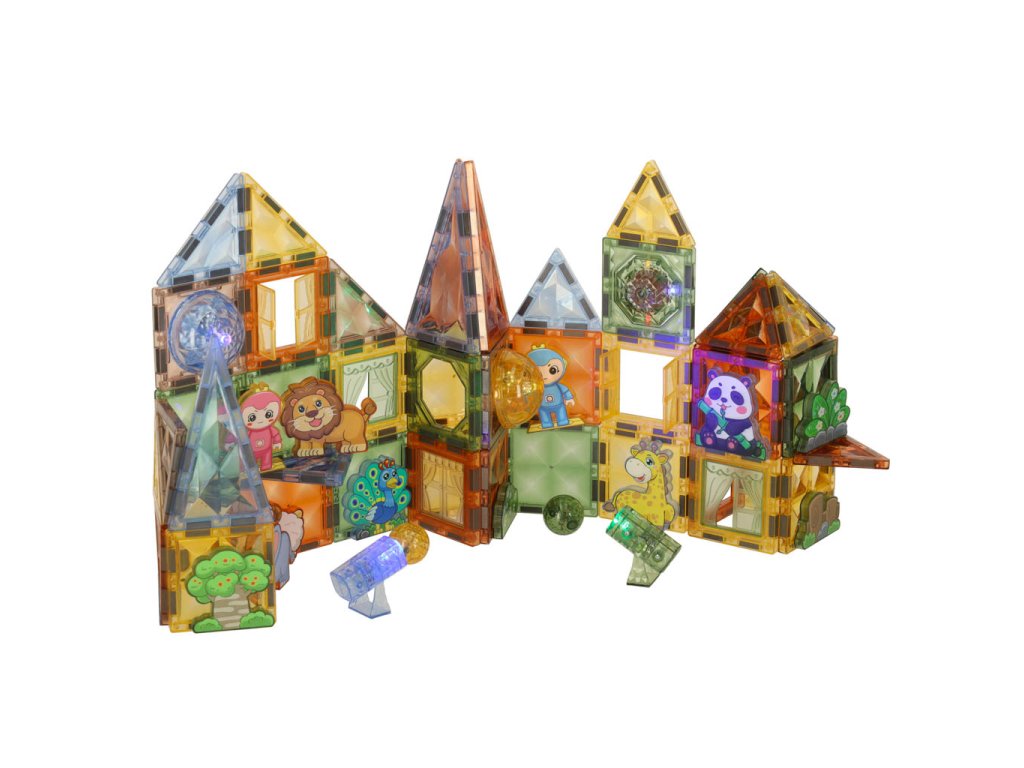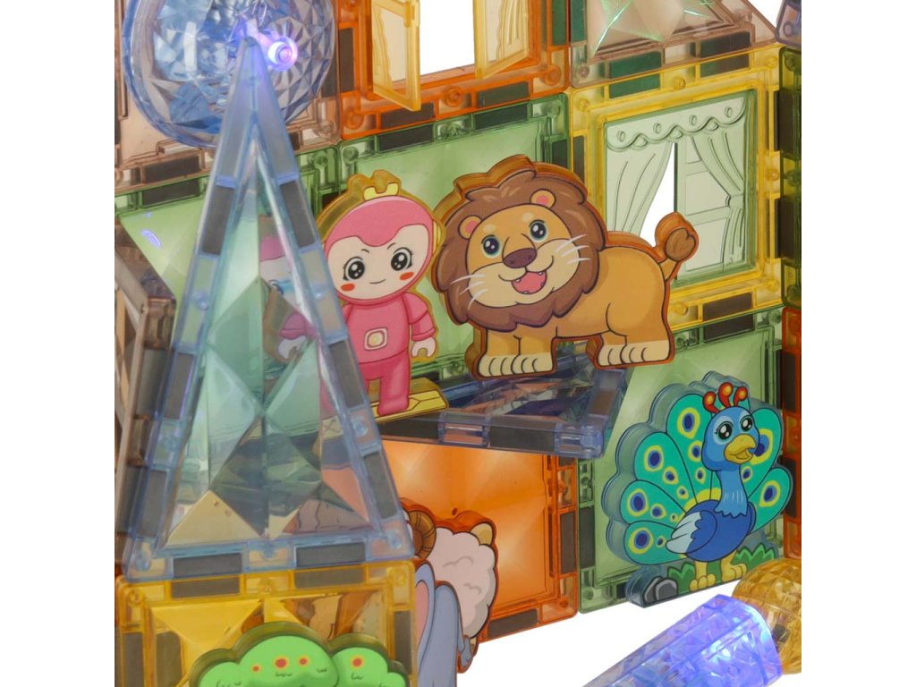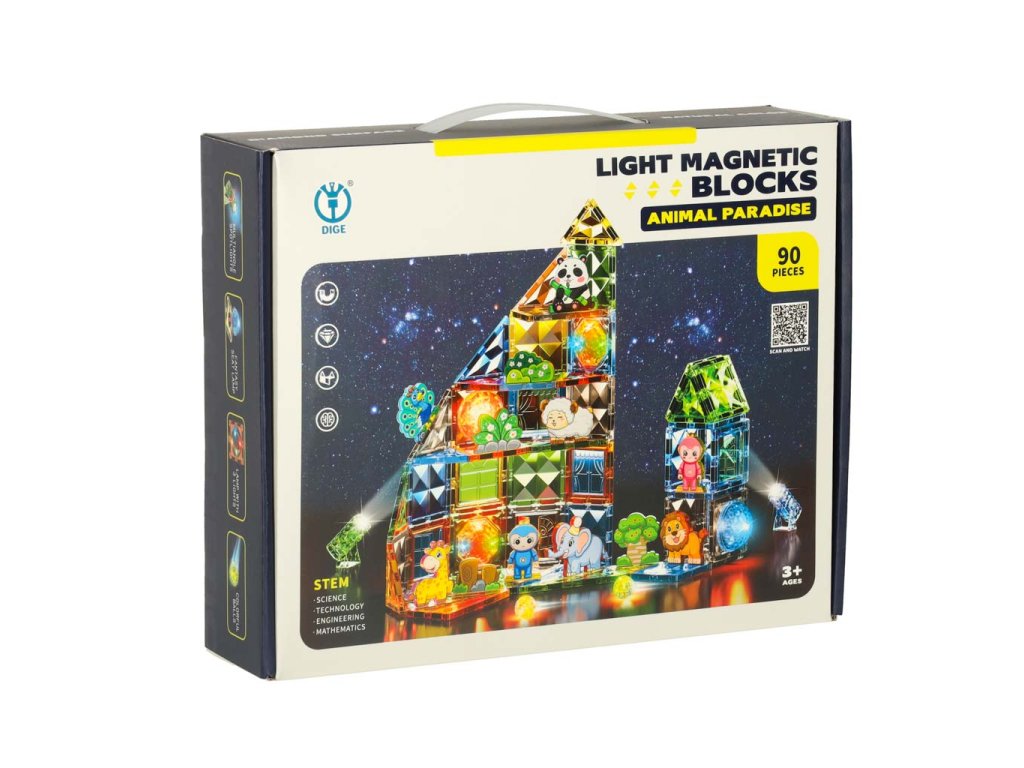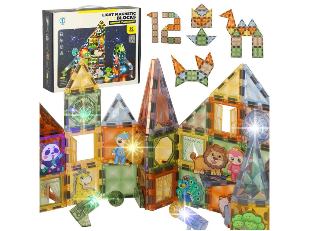 3D stavební magnetické kostky svítící zvířecí park 90 el.