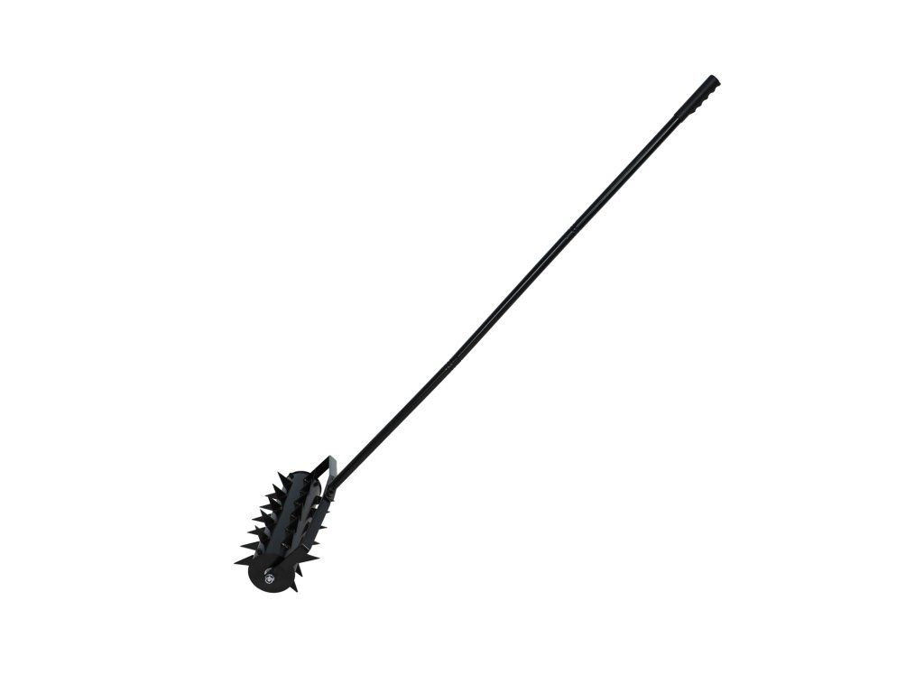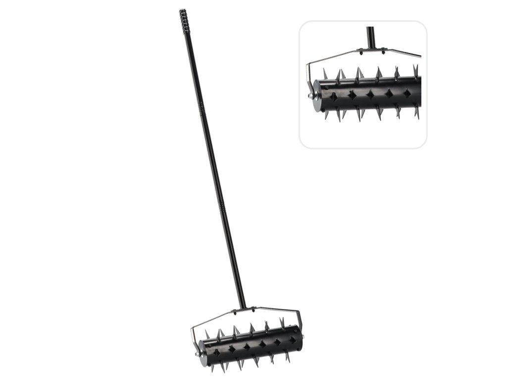 Ruční aerátor s kolečky pro provzdušňování trávníku propichováním půdy hroty. Je to nezbytné zařízení pro péči o okrasné trávníky, které spočívá v prořezávání drnu. Aerátor má kolečka, díky čemuž je práce s ním velmi příjemná. Aerace trávníku je proces provzdušňování trávy, který by měl být prováděn dvakrát za sezónu. Cílem je uvolnění a provzdušnění půdy. • Výška: 148,5 cm • Zlepšuje výměnu vzduchu mezi půdou a atmosférou • Snižuje ztráty způsobené nadměrným odpařováním vody • Pevná kovová konstrukce s plnými, odnímatelnými kolečky • Podporuje účinek hnojivDoplňkové parametry