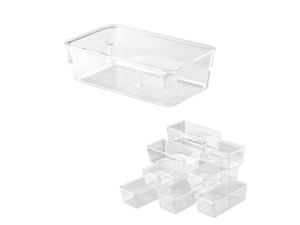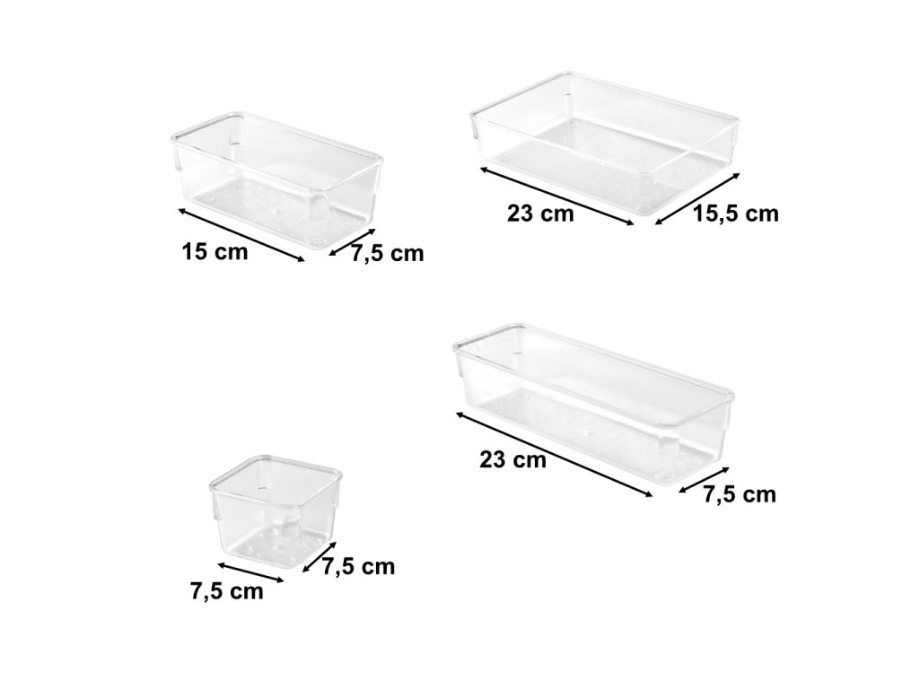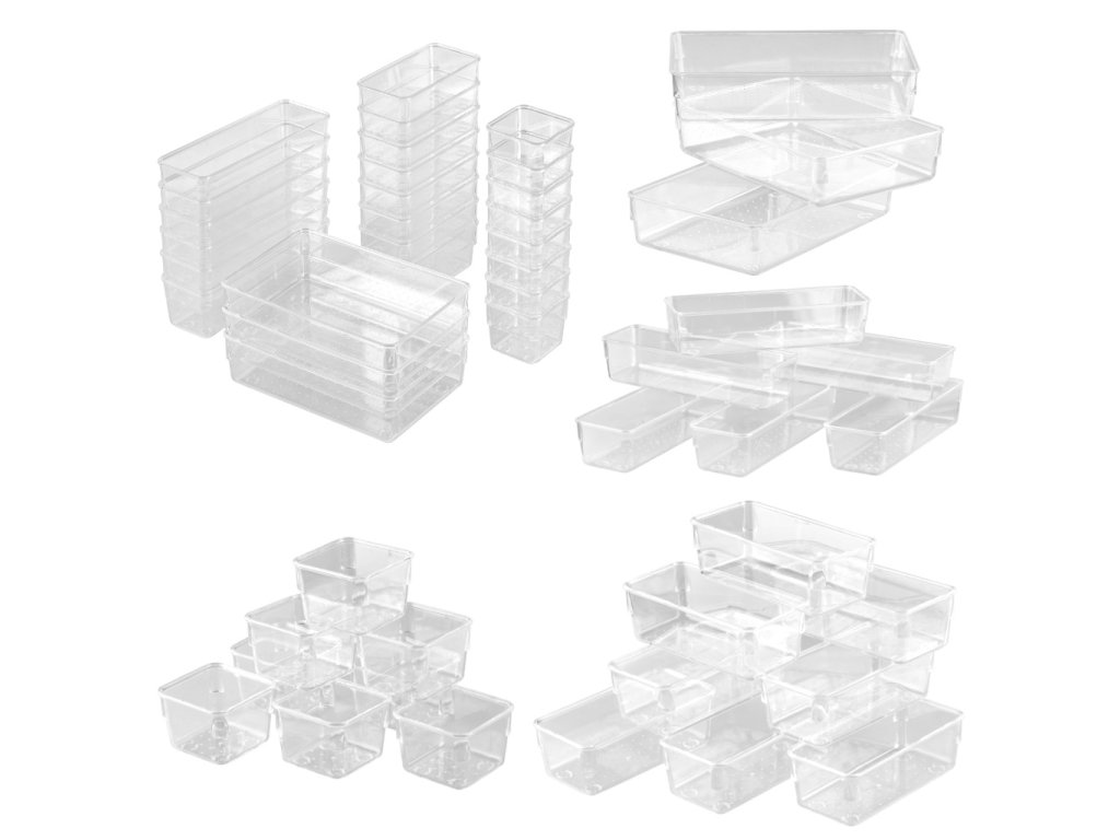 Sada 25 akrylových organizérů představuje multifunkční a stylové řešení, které vnese pořádek a harmonii do každé místnosti. Díky různým rozměrům a univerzálnímu designu se organizéry skvěle hodí do kanceláře, koupelny, kuchyně, ale i do dílny nebo dílny. Průhlednost a odolnost akrylu v kombinaci s moderním designem činí z této sady nejen praktický, ale i estetický doplněk interiéru.