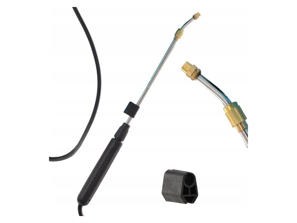 - Tlaková lanca o délce 53 cm s průtokem 800 ml/min, vybavená odolnou PVC hadicí o délce 125 cm pro pohodlné používání.