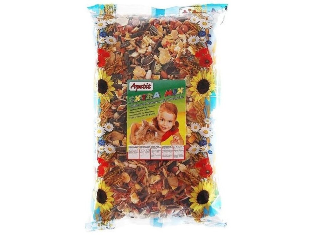 Složení: slunečnice žíhaná, slunečnice bílá, slunečnice černá, kukuřice, ječmen, oves, saflor, čirok, pšenice, slunečnice žíhaná velkozrná, podzemnice, bananové chipsy, mrkev sušená, extrudovaná rýže, extrudované obilniny, mrkvové vločky, rýžové vločky, hrachové vločky, ovesné vločky, kukuřičné vločky, svatojánský chléb.Doplňkové parametry