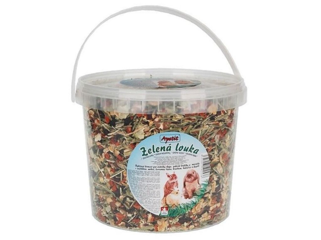 Apetit zelená louka - speciální doplňkové krmivo pro hlodavce složené ze sušených plodin.Složení: luční byliny, kukuřičné vločky, hrachové vločky, mrkvové vločky, sojové vločky, fazolové vločky, vločky z červené řepy.Doplňkové parametry