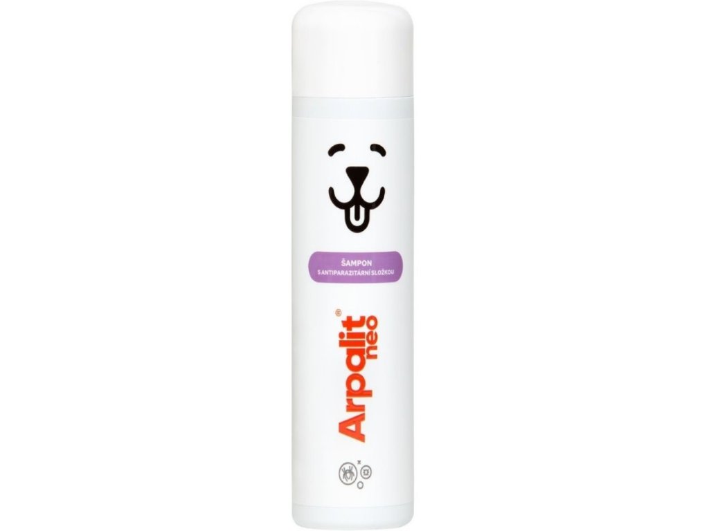 Popis přípravku:světle modrý zakalený viskózní roztok.Užití:Jemný šampon na mytí srsti kožešinových zvířat obohacený o složku, která napomáhá snížení výskytu parazitů v srsti zvířete (jako jsou blechy, klíšťata, vši a všenky) a s přídavkem vitamínů, bambusového extraktu, olivového oleje a elastinu. Používá se pro zevní péči o srst psů i jiných kožešinových zvířat. Šampon myje, čistí i ošetřuje srst zvířete. Obsahuje vitamín B5, olivový olej a elastin, nevysušuje a nedráždí pokožku, jeho pH je neutrální. Srst po ošetření získává jemnost, pevnost, pružnost, hluboký lesk a jasné zbarvení.Způsob použití:Přiměřené množství šamponu naneste pomocí ruky na namo-čenou srst a jemným masírováním vytvořte bohatou pěnu. Pro mláďata nebo malá zvířata šampon použijte zředěný vodou v poměru 1:2. Šampon ponechejte asi 5 minut působit a poté srst důkladně vlažnou vodou propláchněte. Pro zvýšení lesku a zdraví srsti naneste po umytí přiměřené množství Arpalit Neo kondicionéru s extraktem z listů čajovníku a lehce jej vmasírujte do srsti a pokožky. Ponechte po dobu 2-5 minut působit. Poté srst opět důkladně propláchněte vlažnou vodou. Srst vysušte fénem nebo nechejte volně proschnout. Upozornění:Nepoužívejte pro nemocná nebo alergická zvířata, nepoužívat v době laktace. Nepoužívejte pro mláďata do stáří 2 měsíců. Nepoužívat u koček! Přípravek není náhradou veterinární péče a léčiv doporučených veterinárním lékařem.Složení přípravku:Aqua, Sodium Laureth Sulfate, Glycerin, PEG-7 Glyceryl Cocoate, Cocamidopropyl Betaine, Alcohol Denat., Coco-Glucoside, PEG-12 Dimethicone, Hydroxyethylcellulose, Permethrin, Phenoxyethanol, Sodium Chloride, Fenoxycarb, Olea Europaea Fruit Oil, Allantoin, Parfum, Panthenol, Propylene Glycol, Bambusa Vulgaris Extract, Hydrolyzed Elastin, Ethylhexylglycerin, Methylparaben, Propylparaben, CI 42090. Číslo schválení:163-13/C Kosmetický veterinární přípravek. Prodejný bez omezení.Doplňkové parametry