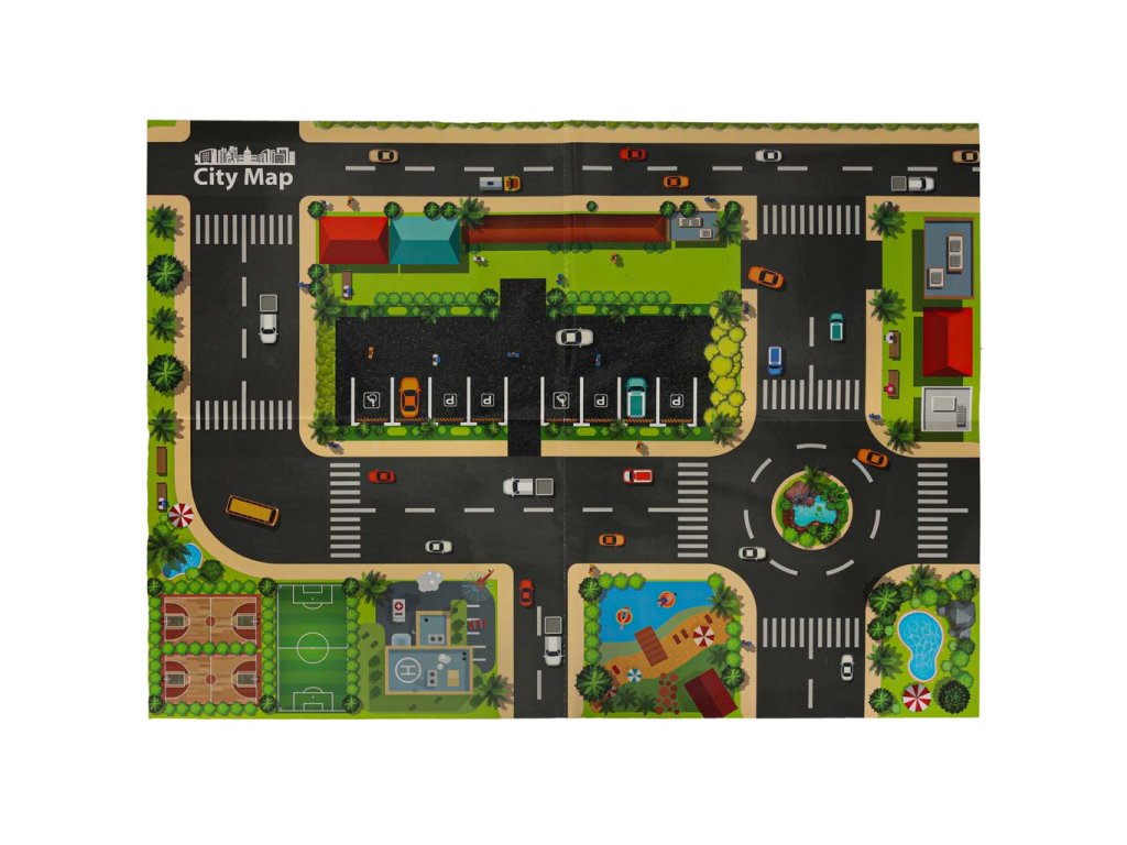 Součástí je také mapa města, která obohacuje scenérii a inspiruje dítě k vytváření vlastních příběhů a dobrodružství s autíčky v hlavní roli.