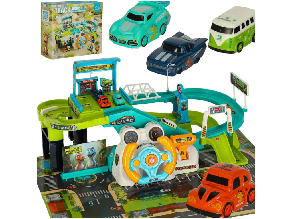 Autodráha garáž dinosaurus 4 auta