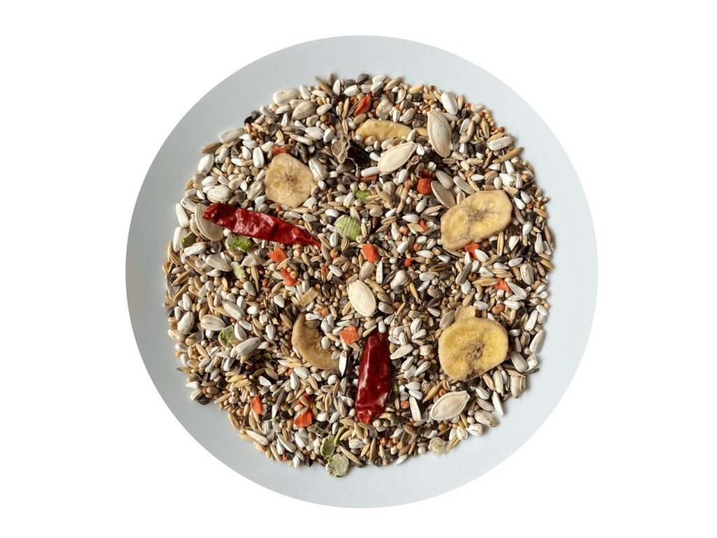 Složení:světlice barvířská, oves nahý, pohanka, slunečnice bílá, čirok bílý, lesknice, paddy rýže, čirok červený, proso žluté, proso bílé, oves celý, proso červené, hrachové vločky, sušené banány, pšenice, konopné semeno, stropestřec mariánský, svatojánský chléb, dýně, mrkev sušená, ječmen, chilli papričkyDoplňkové parametry