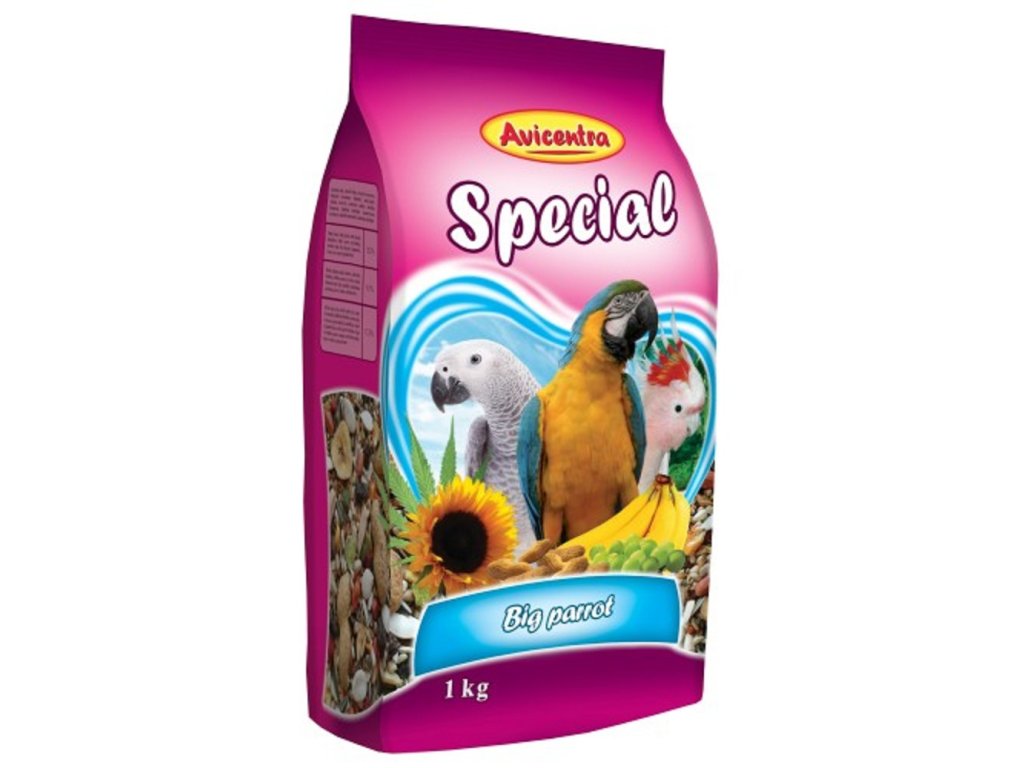 Složení: slunečnice (bílá, žíhaná), safrol, oves bezpluchý, pohanka, burské ořechy, čirok (bílý, červený), hrachové vločky, oves (žlutý, černý), dýňová semena, rozinky, konopné semeno, kukuřice, kukuřičné vločky, paddy rýže, extrudované granule s ovocem, banány, svatojánský chléb, pšenice.Deklarované jakostní znaky: hrubý protein 15,2%, hrubá vláknina 9,7%, hrubé oleje a tuky 17,5%, vlhkost 13%Krmivo pro amazoňaky, žaky, ary, kakadů a další velké papoušky. Doplňujte o čerstvé ovoce, zeleninu aj. Pro lepší trávení podávejte říční písek, nebo grit. Zajistěte dostatek čerstvé pitné vody. Staré zbytky krmiv pravidelně odstraňujte.Doplňkové parametry