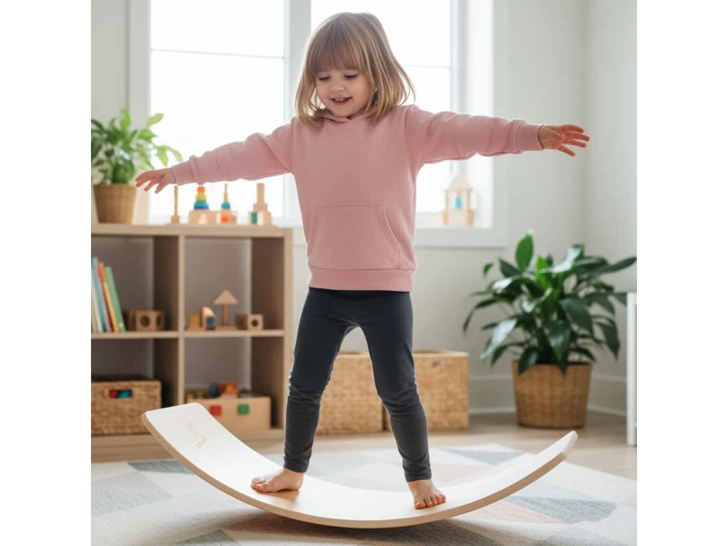 Podle zásad, které vypracovala Maria Montessori, platí, že čím jednodušší je hračka, tím lépe ovlivňuje vývoj dítěte! Není pochyb o tom, že balanční deska se k tomu dokonale hodí!