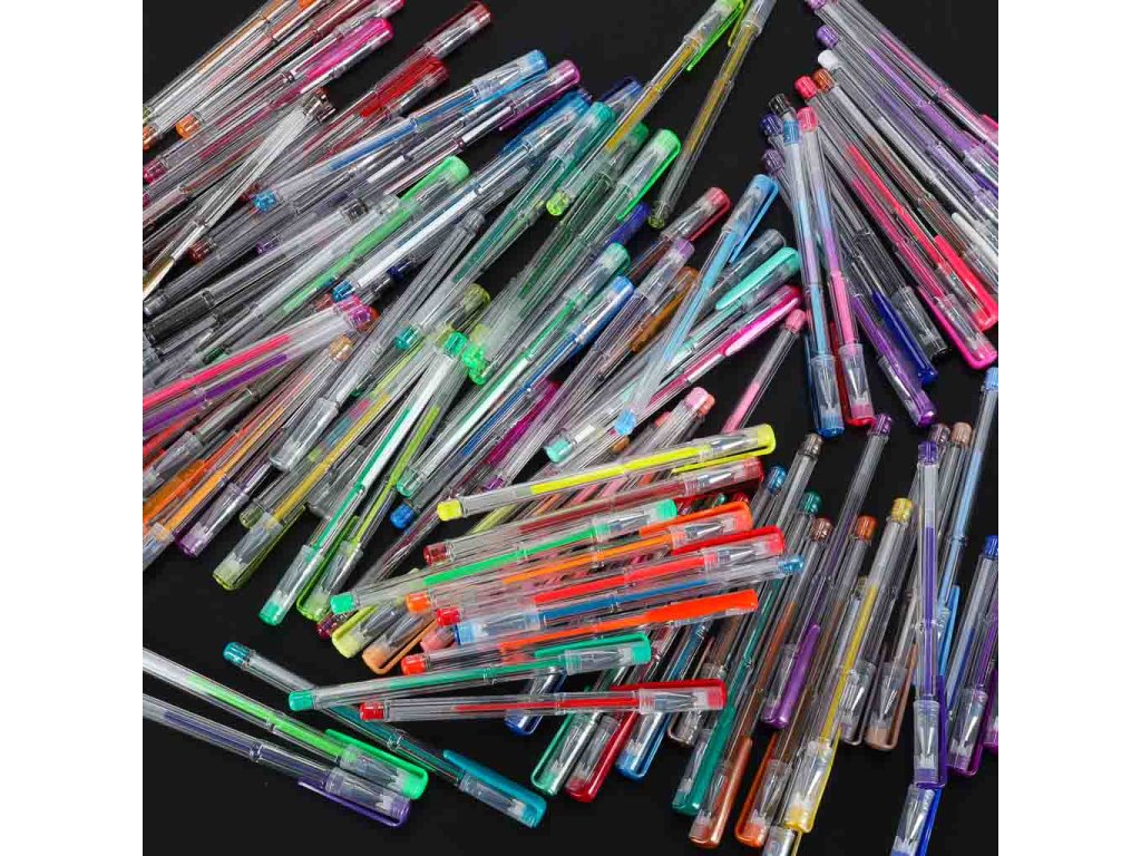 Barevná gelová pera v pouzdře 100 kusů + 100 náplní