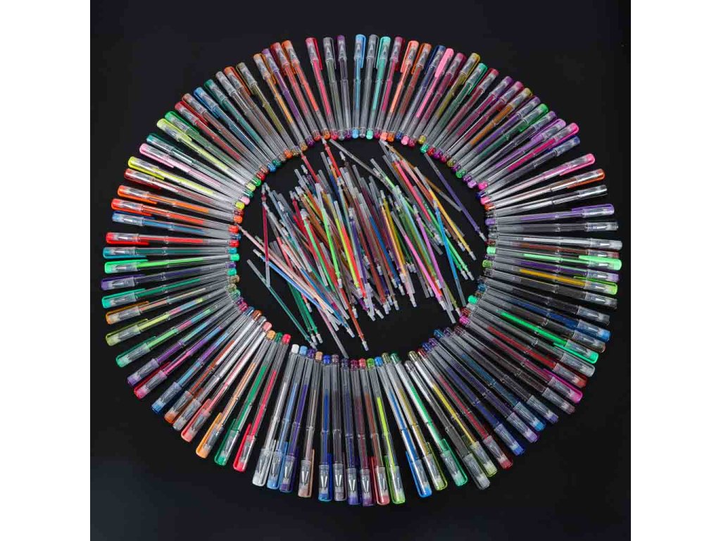 Barevná gelová peraobohatí obsah školních a vysokoškolských sešitů.