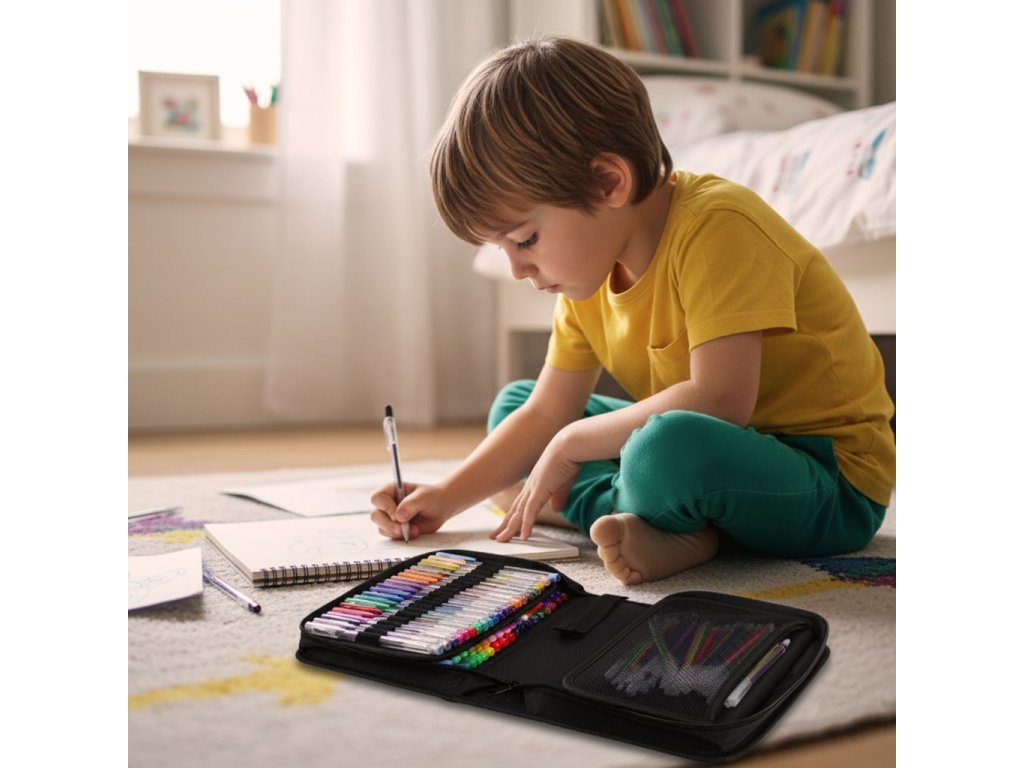 Praktická sada barevných tužek v odnímatelném penálu je vhodná pro širokou škálu tvůrčích činností. Barevné propisky lze použít zejména k pořizování kreativních poznámek. Používání barevných fixů usnadňuje zapamatování látky na základě asociací. Barevné ozdoby v sešitě nebo kaligrafie mají pozitivní vliv na jemnou motoriku a přesnost pohybu a rozvíjejí smysl pro estetiku a kreativitu.