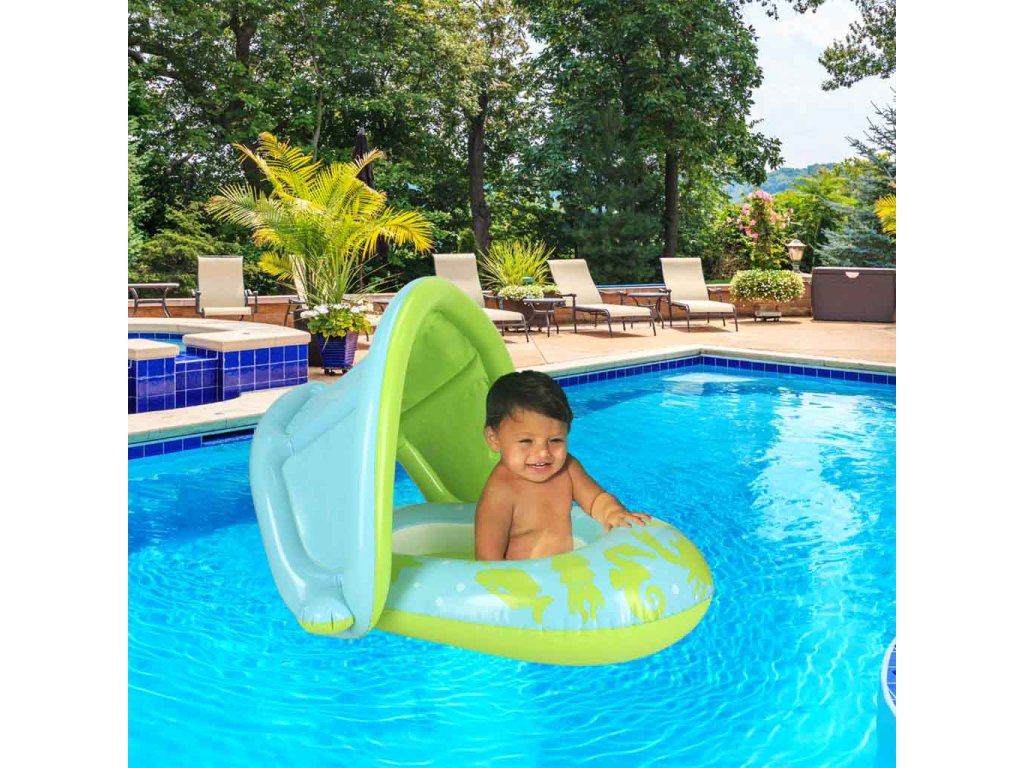 Zelené kolo se sedadlem je ideální pro batole, které se právě začíná učit plavat. Díkyotvorům na nohy bude vaše dítě v kolečku stabilně sedět a nevypadne z něj. Nafukovací stříška poskytuje ochranu jemné pokožce vašeho dítěte před škodlivými slunečními paprsky. Navíc při odchodu do bazénu lze stříšku odejmout. Kolo je vyrobeno z odolného PVC, takže vydrží více než jednu letní sezónu.