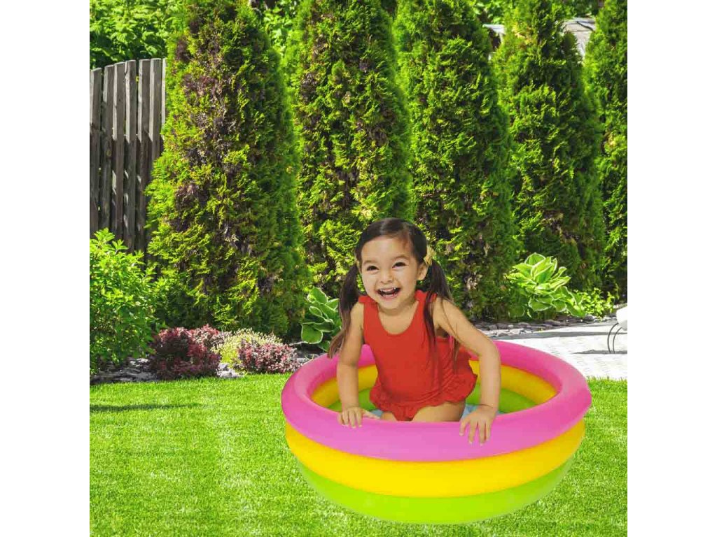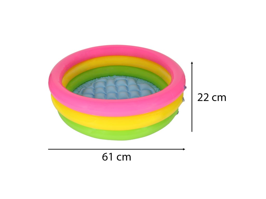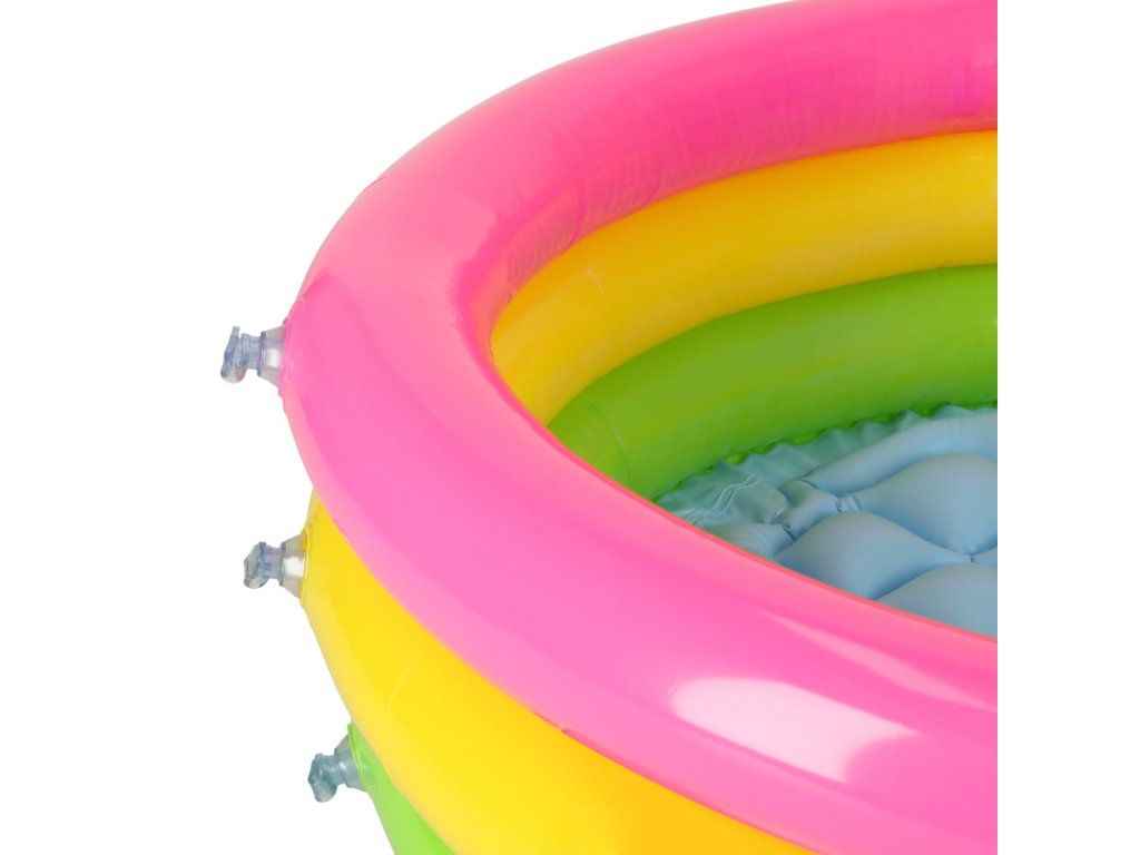 Bazén se skládá ze tří samostatně nafukovacích kruhů v zářivých barvách, které upoutají pozornost vašeho batolete. Má také měkké nafukovací dno, které izoluje od studené země a poskytuje pohodlí.