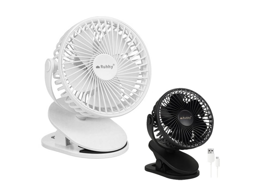 🌬️ Bezdrátový ventilátor bílý Ruhhy 25566 – přenosný stolní ventilátor s klipem a USB-C nabíjením