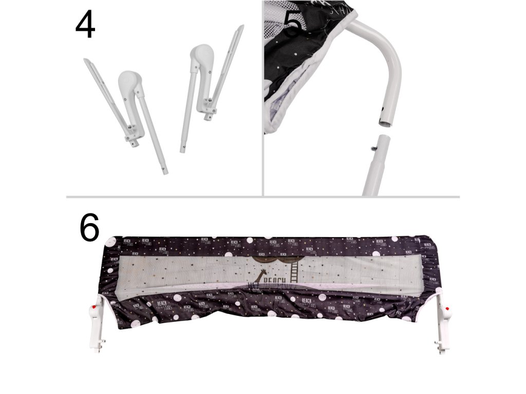 Praktické zábradlí chrání před náhodným pádem a zajišťuje pohodlí a bezpečí pro všechny členy domácnosti. Montáž je velmi snadná - stačí složit rám, zasunout jej do látkového síťovaného potahu a poté umístit stojany pod matraci.
