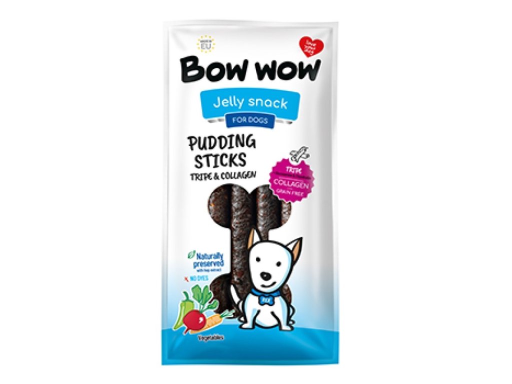 Bow Wow Jelly snack Pudding sticks (dršťky s kolagenem a zeleninou) 6ks/bal.