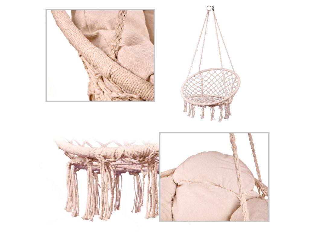 Byl vytvořen s ohledem na vaše pohodlí, zajišťuje dokonalou polohu těla a měkký polštář ještě více umocňuje požitek z houpání. Její zářivé barevné provedení nejenže umocní kouzlo vaší zahrady, ale stane se také výrazným doplňkem vašeho domácího interiéru. Houpačka je vyrobena z robustních materiálů a vybavena silnými lany, takže bez problémů vydrží zátěž až 120 kilogramů.
