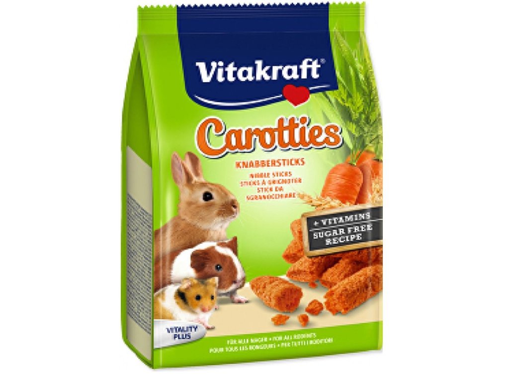 Vyrobeno z křupavých mrkviček a obilovin s karotenem.Složení: obiloviny, zelenina (4% mrkev).Deklarované jakostní znaky: 15,0% proteiny, 3,2% tuk, 4,0% vláknina, 4,3% prach, 10,0% vlhkost, 64,0% uhlovodany.Krmení: 1-2 pochoutky denně.Doplňkové parametry