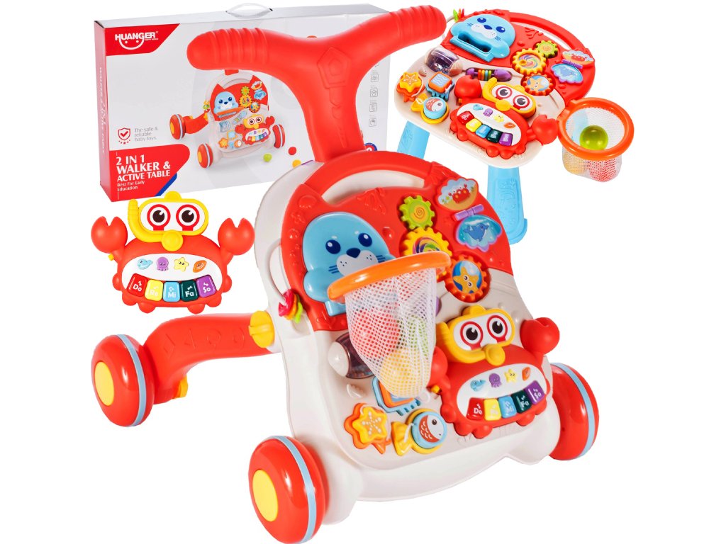 Chodítko tlačné stolek 2v1 červené