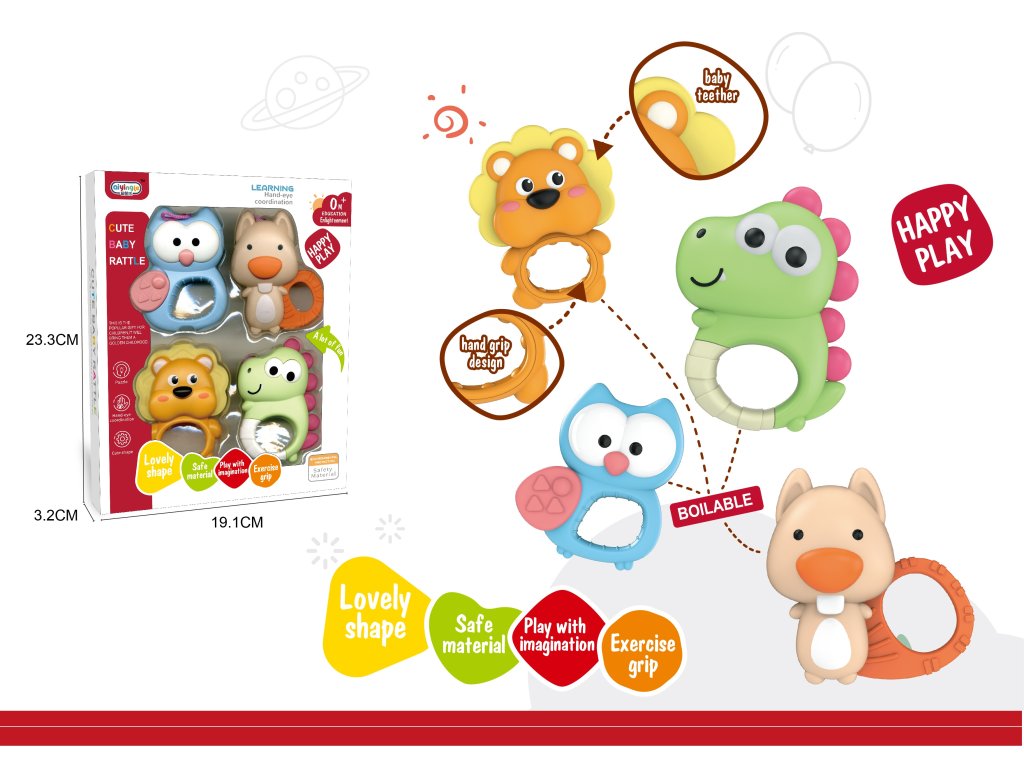 Chrastítka zvířátka 4 ks - sadaDoplňkové parametry