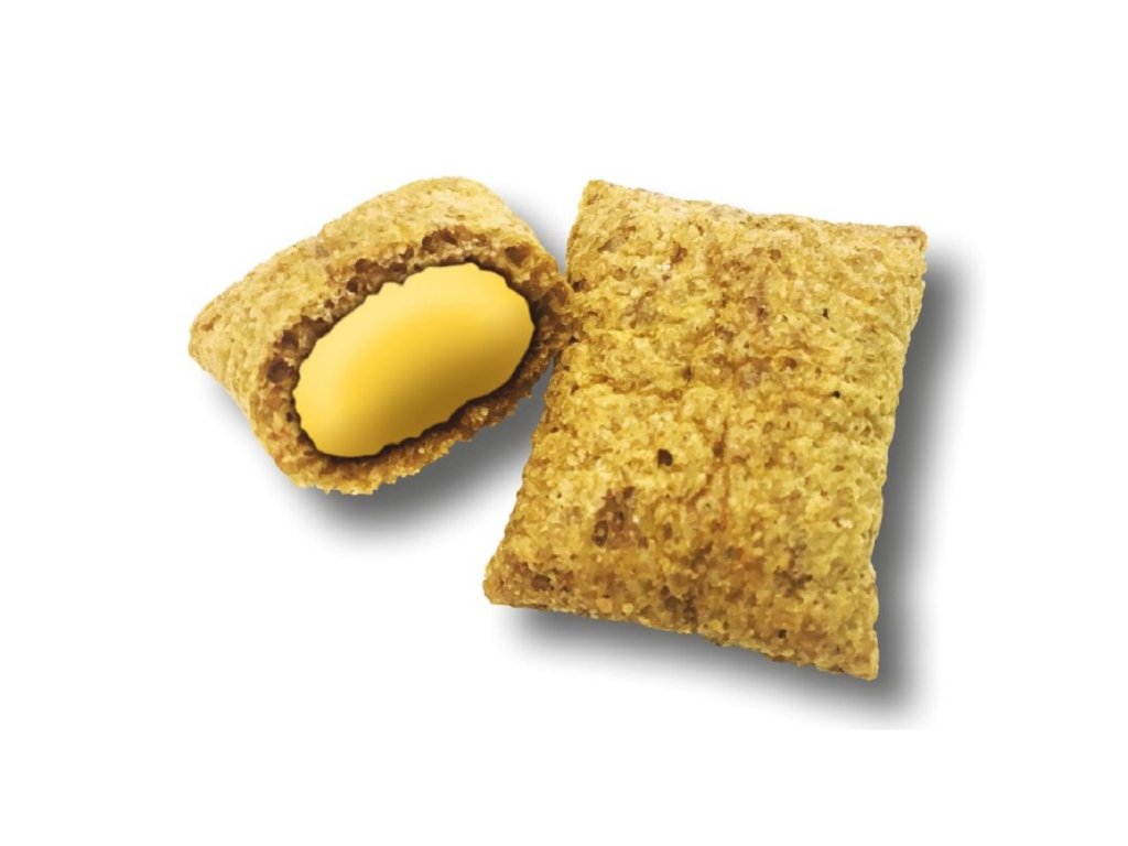 Chutné zdravé polštářky plněné sýrem jsou skvělou odměnou pro vašeho mazlíčkaSložení: hrách, ovesná mouka, rostlinný olej a tuk, sýr a výrobky ze sýra (min. 4%), syrovátka sušená, slad, cukr, obilná mouka, surové lecitiny. Analytické složky: hrubý protein 15,0 %, hrubý tuk 14,0 %, vlhkost 8,0 %, hrubý popel 2,0 %, hrubá vláknina 3,3 %. Návod ke krmení: slouží jako pochoutka za odměnu k běžné denní krmné dávce. Podávejte 1 - 3 kusy denně. Zajistěte zvířeti vždy přístup k čerstvé pitné vodě.Doplňkové parametry