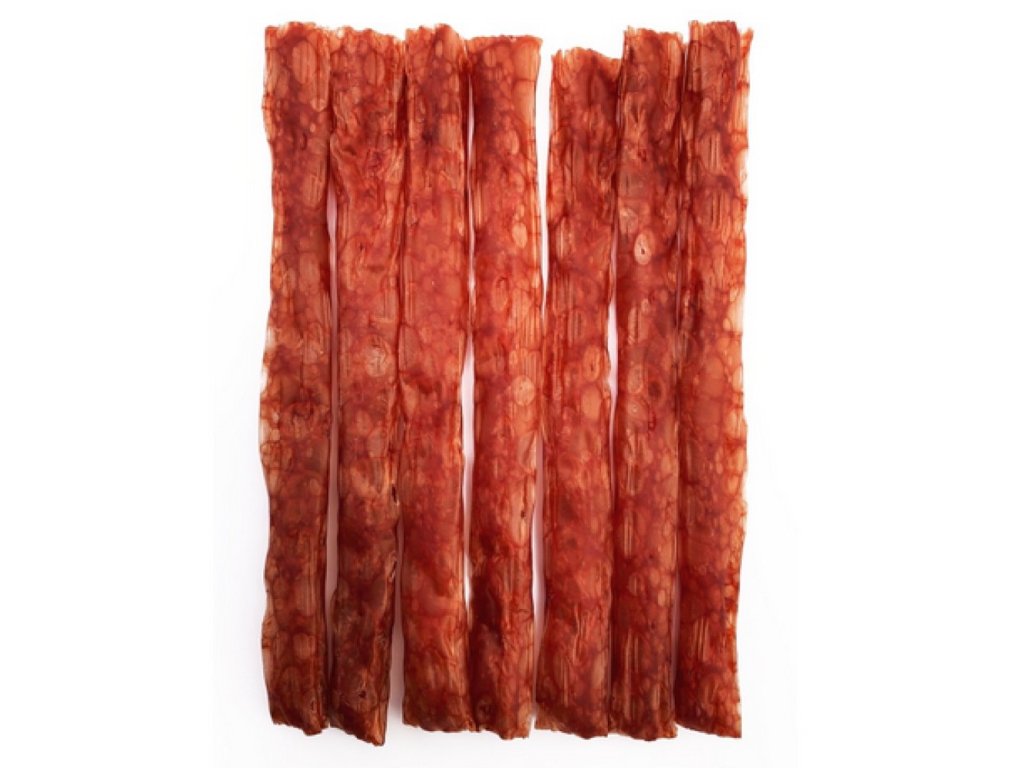 Menší masový salámek, je ideální na trénink nebo jako odměna pro vaše mazlíčky. Chutná odměna pro psy všech velikostí. Vyrobeno v ČR. Složení: kukuřičný škrob, žitná mouka, glycerin, melasa, syrovátka sušená, hydrolizovaný kolagen (min. 4 %), hydrolizovaný kuřecí protein, doplňkové látky: barvivo (ES přísady). S konzervanty a antioxidanty (ES přísady).Analytické složky: hrubý protein 6,0 %, hrubý tuk 1,3 %, vlhkost 14 %, hrubý popel 1 %, hrubá vláknina 0,5%.Návod ke krmení: slouží jako pochoutka za odměnu k běžné denní krmné dávce. Podávejte 1 kus denně. Zajistěte zvířeti vždy přístup k čerstvé pitné vodě. Není určeno pro lidskou spotřebu.Doplňkové parametry