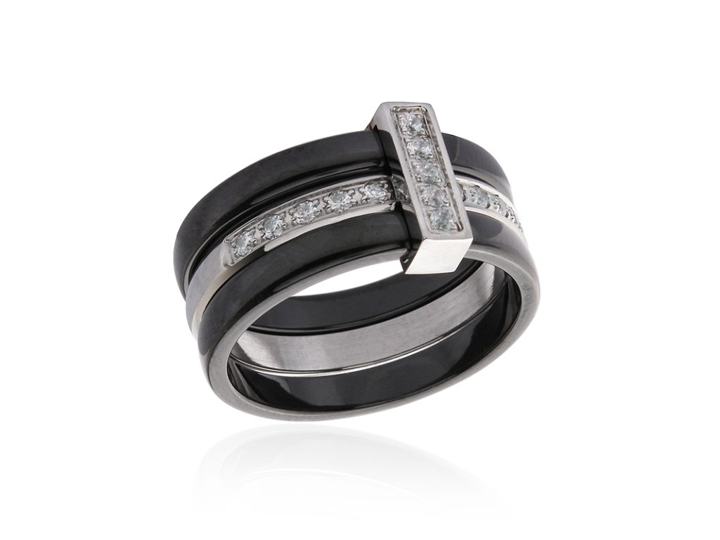 Dámský černý keramický prsten se zirkony BLACK&WHITE S632100