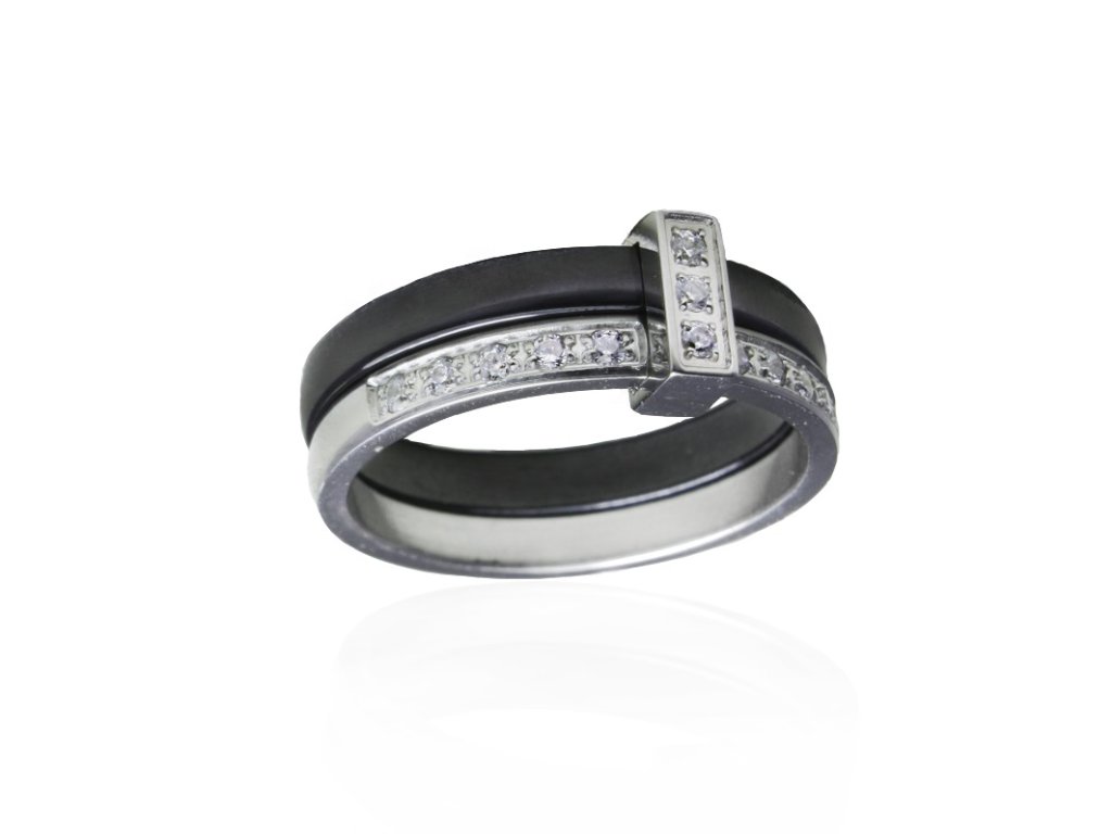 Dámský černý keramický prsten se zirkony BLACK&WHITE S902060