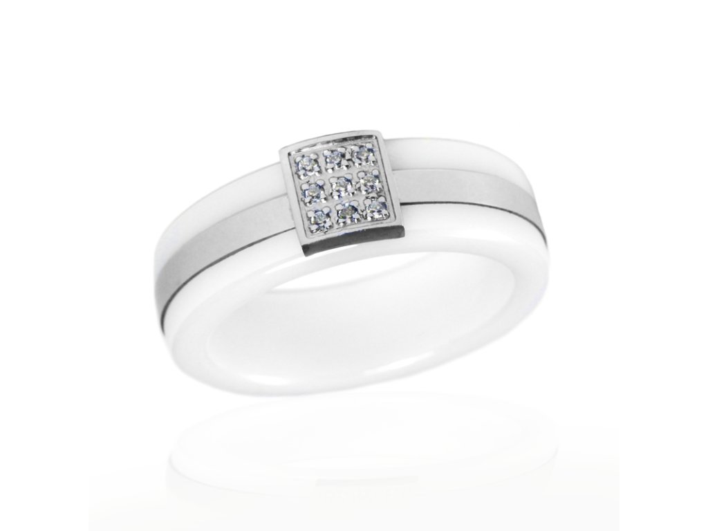 - zdobí ho devět menších čirých zirkonů ve tvaru čtverce,