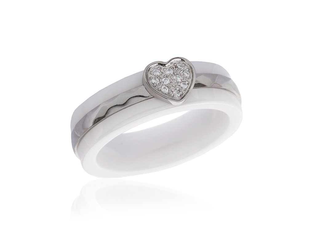 Dámský keramický prsten srdce se zirkony BLACK&WHITE S627100