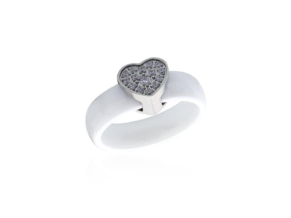Dámský keramický prsten srdce se zirkony S431160