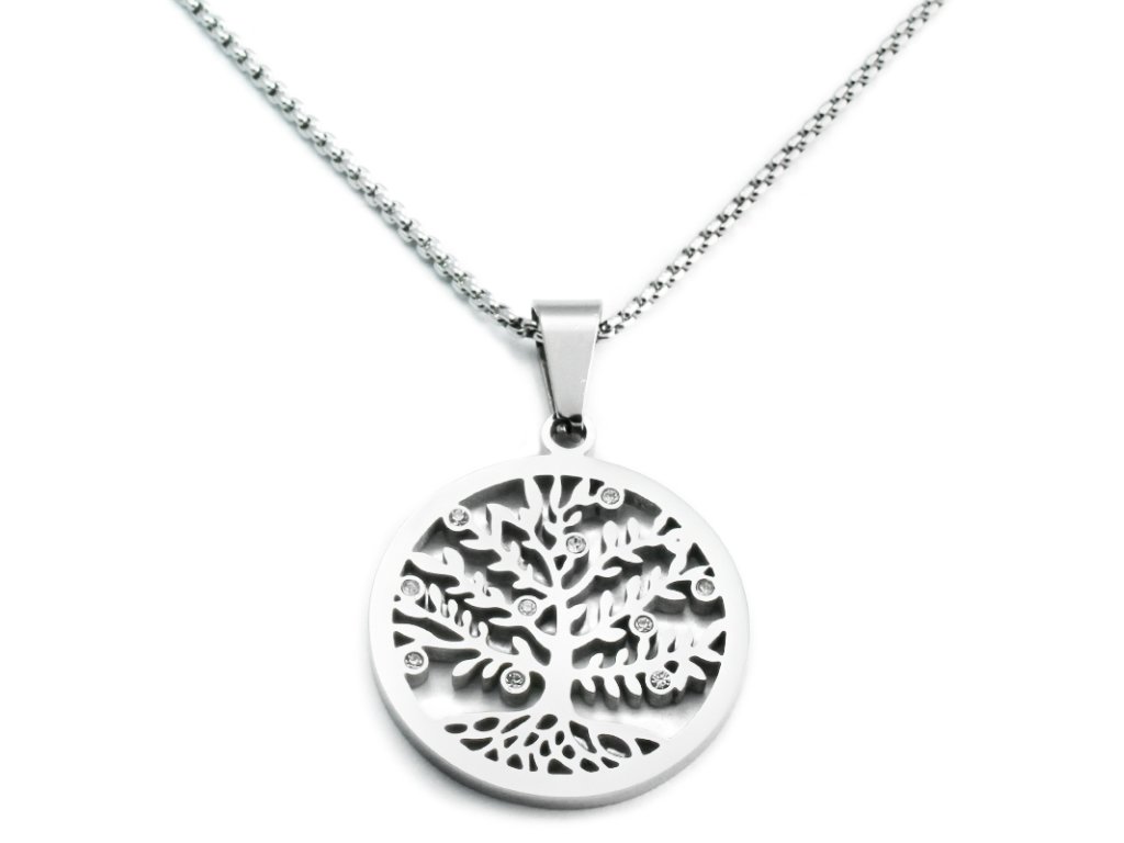 Dámský náhrdelník 2,5 cm strom života se zirkony z chirurgické oceli S113225090