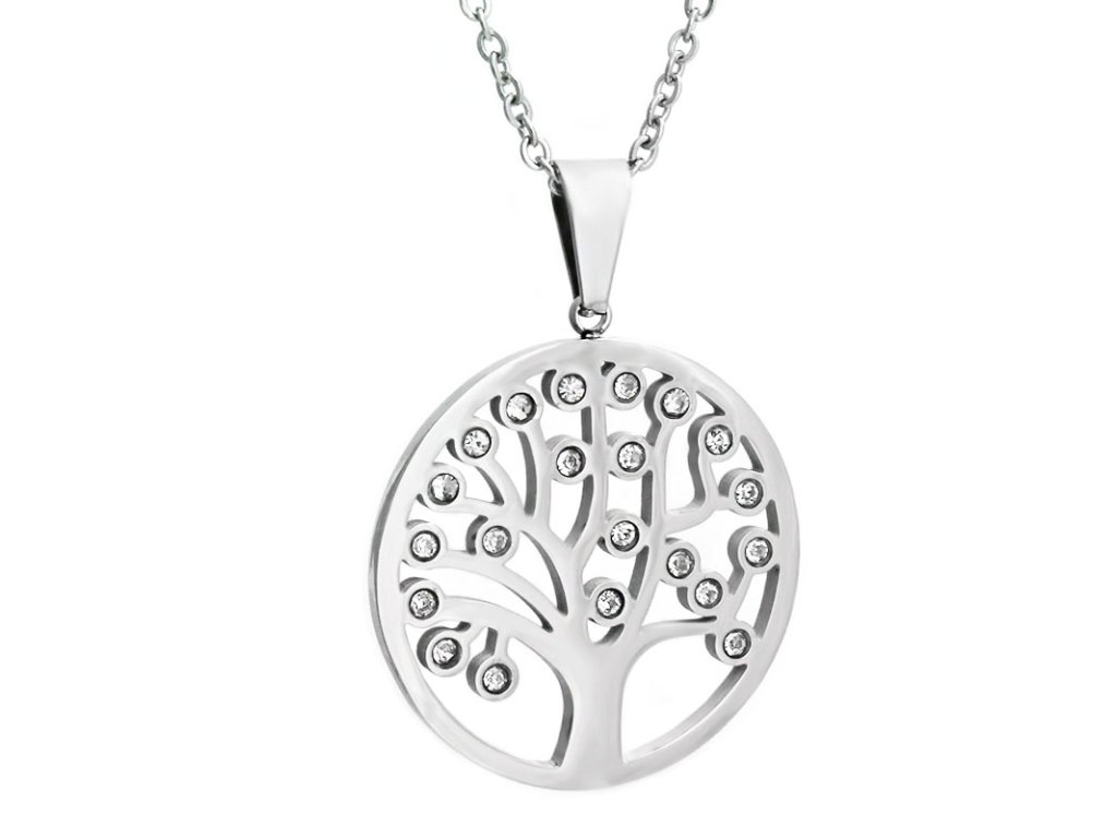 Dámský náhrdelník 3 cm strom života se zirkony z chirurgické oceli S11261090