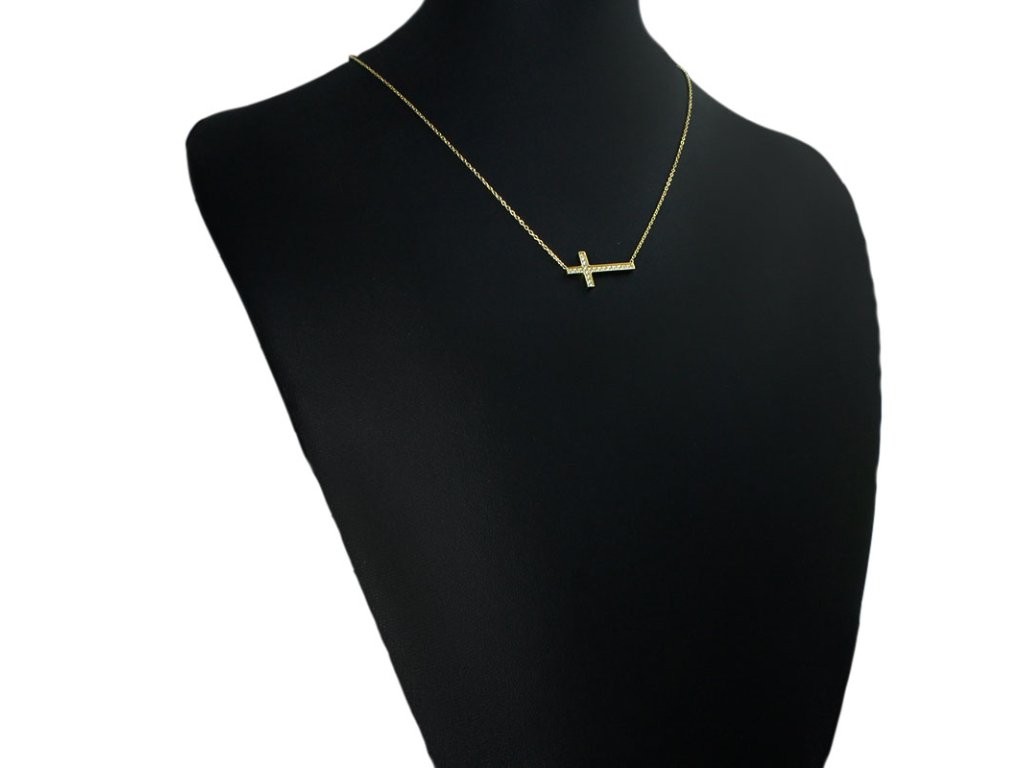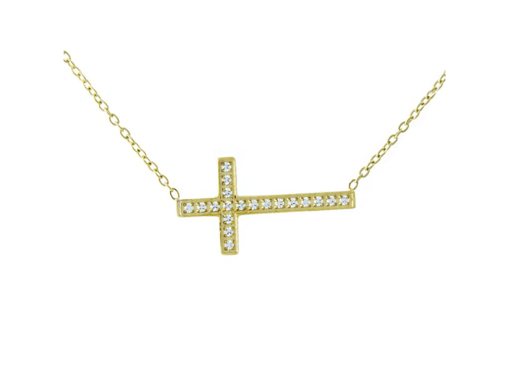 Dámský náhrdelník křížek zlatý se zirkony z chirurgické oceli S11115120