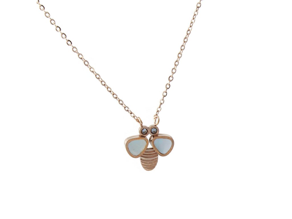 Dámský náhrdelník rose gold včelka z chirurgické oceli S11113100