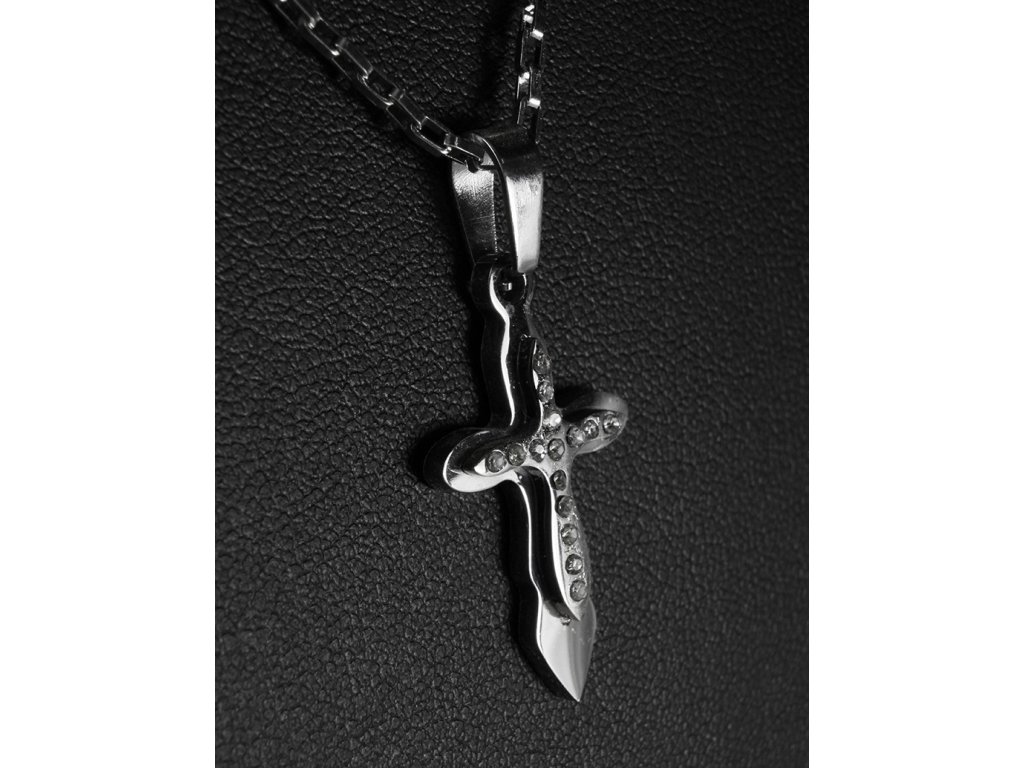 - designový přívěsek ve tvaru křížku s čirými krystaly,
