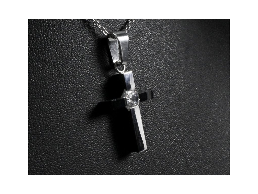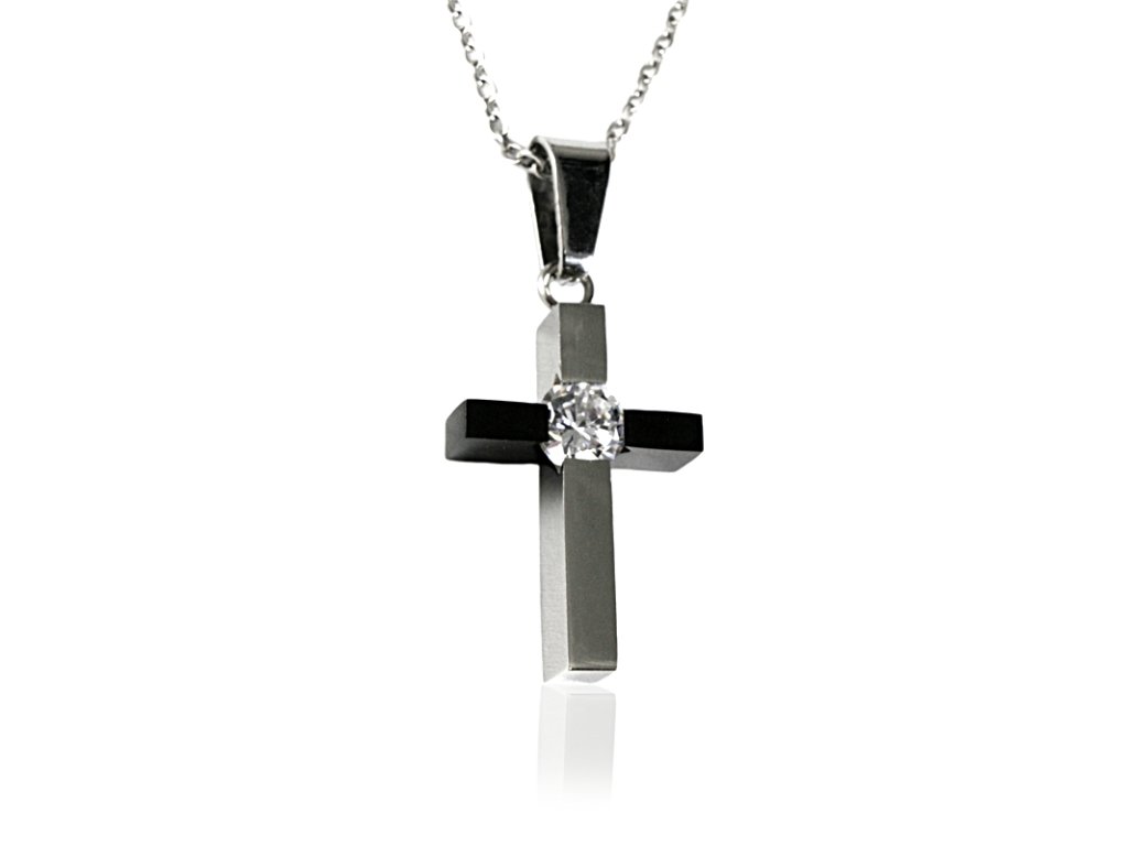 - designový přívěskem ve tvaru kříže s krystalem ve dvou barvách,