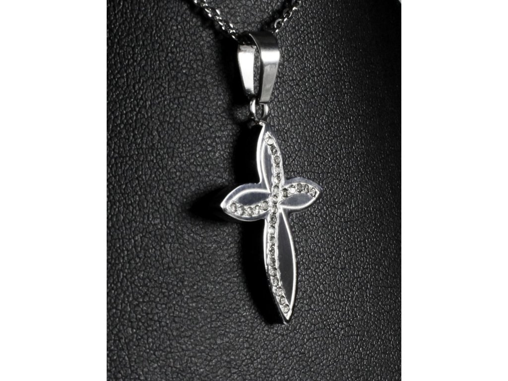 - designový přívěsek ve tvaru křížku s čirými krystaly,