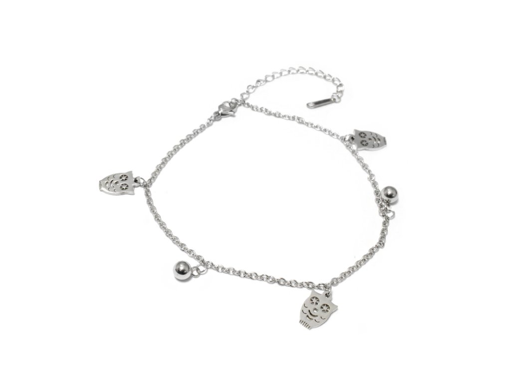 Dámský náramek na nohu z chirurgické oceli sova S1032040
