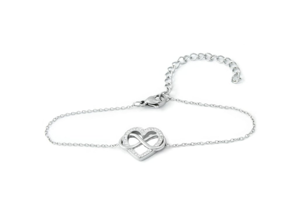 - nadčasový náramek je zdoben srdcem se zirkony a symbolem nekonečna,