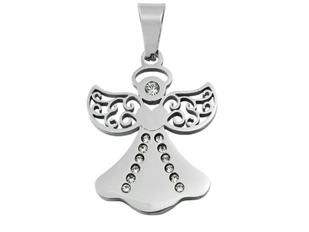 Dámský přívěsek anděl z chirurgické oceli se zirkony S11299060