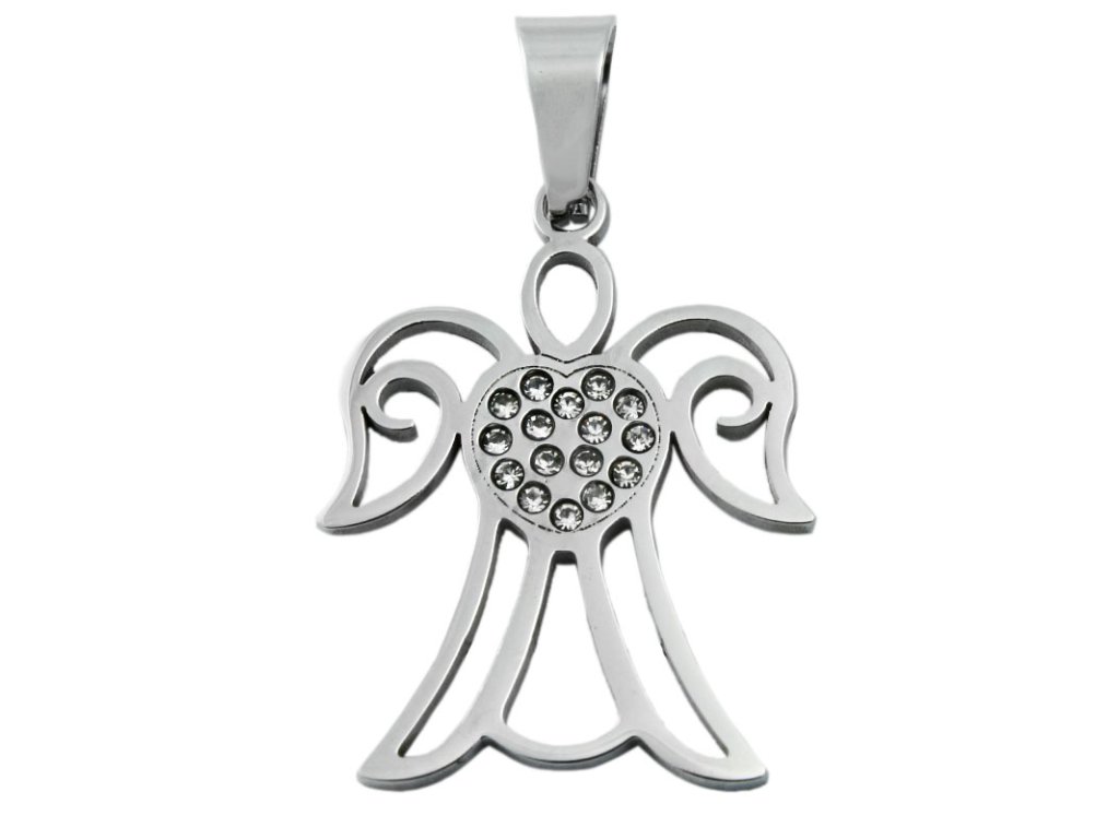 Dámský přívěsek anděl z chirurgické oceli se zirkony S11300060