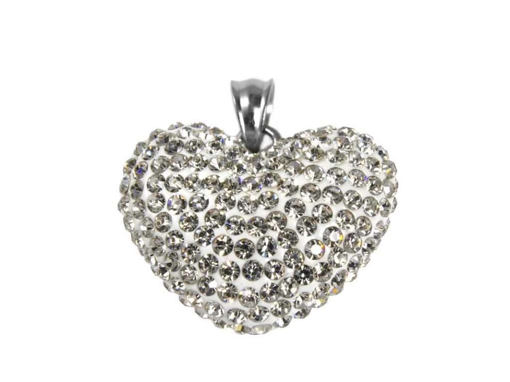 - přívěšek ve tvaru 3D srdce je z jedné půlky zdobený nespočtem čirých zirkonů,