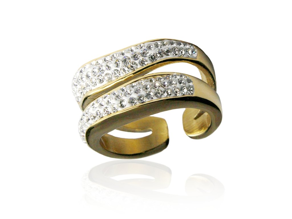 Dámský prsten se zirkony z chirurgické oceli gold S302100