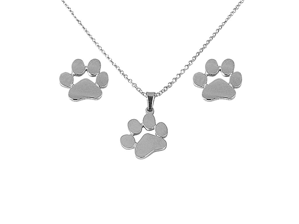 Dámský set náušnice a řetízek s přívěskem tlapky z chirurgické oceli S846080