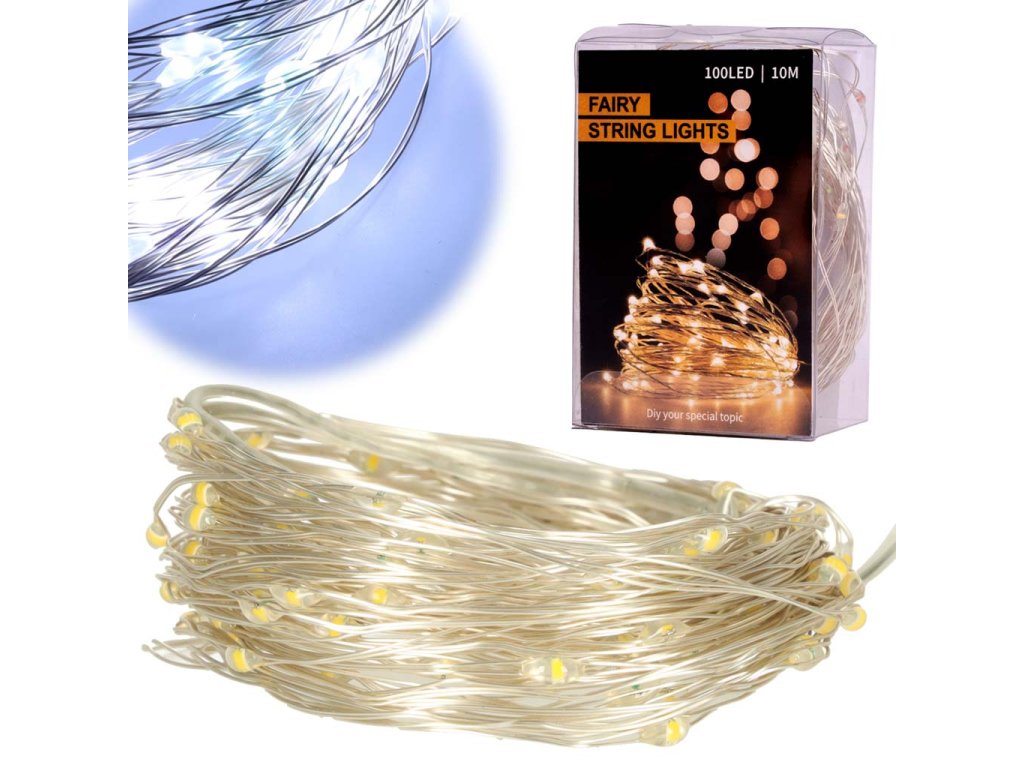 LED SVĚTLA DEKORATIVNÍ DRÁT 10M 100LED STUDENÁ BÍLÁ