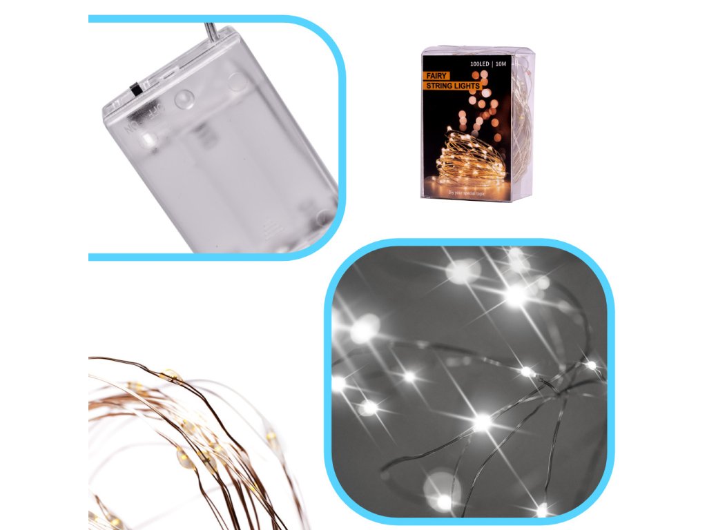 100 světel na 10 metrech drátu ozdobí váš pokoj a rozzáří vaše vánoční dekorace. Protože je drát tenký, snadno se schová v jehličí a váš vánoční stromek bude vypadat kouzelně.