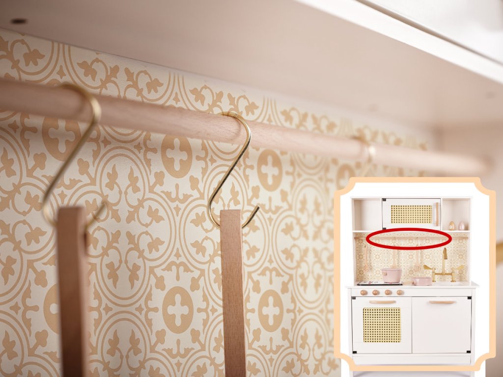 Kuchyně v retro stylu osloví milovníky rustikálního interiérového designu, stejně jako milovníky estetiky Boho nebo Scandi. Díky jednoduchému tvaru a tlumeným barvám - kombinaci bílé, zlaté a pudrově růžové - působí elegantně a skvěle se hodí do každého interiéru.
